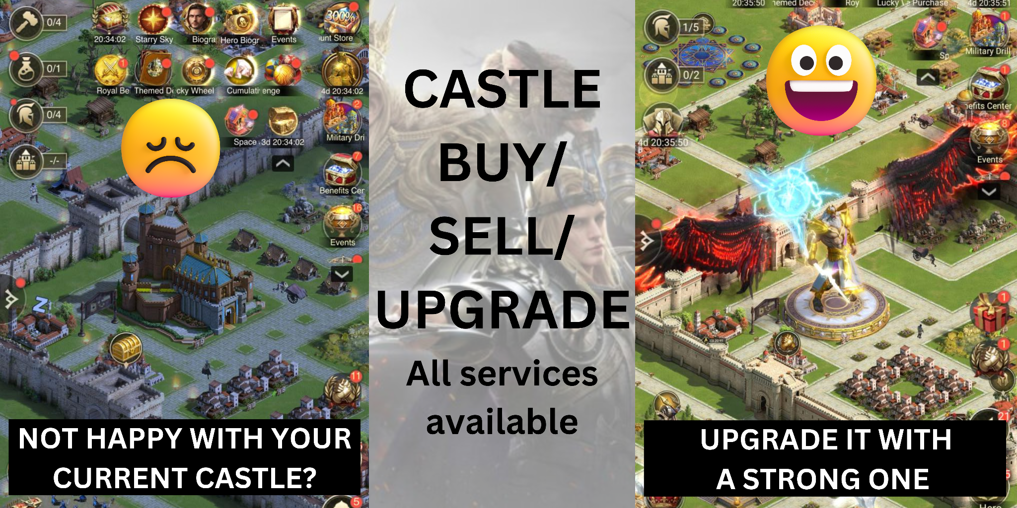 Are you looking to upgrade your castle, or perhaps sell your current one for a stronger fortress? We offer a hassle-free solution for all your castle needs!
